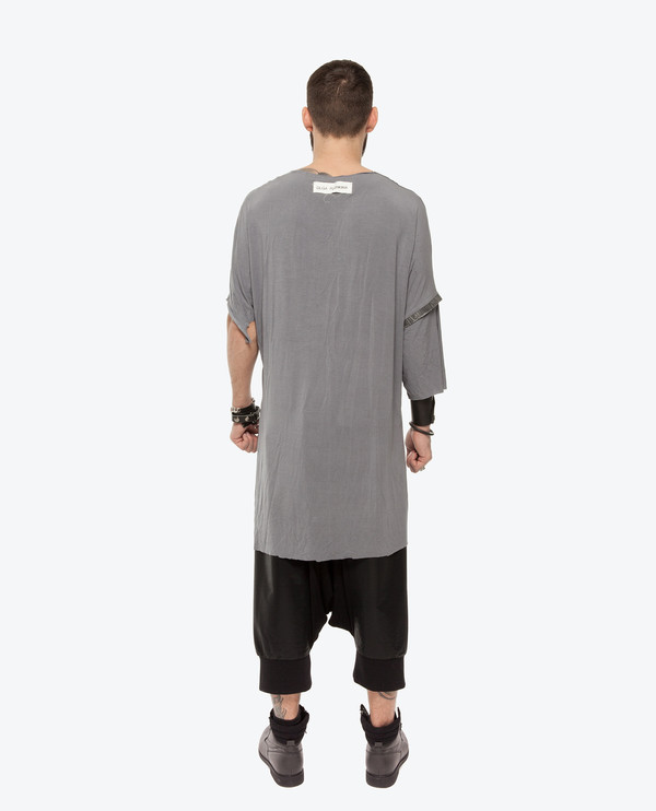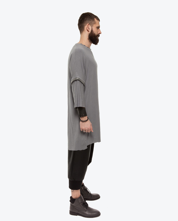 Удобный для движения, свободный крой; текстурирование ткани; ассиметричный вырез; мягкий, приятный к телу материал