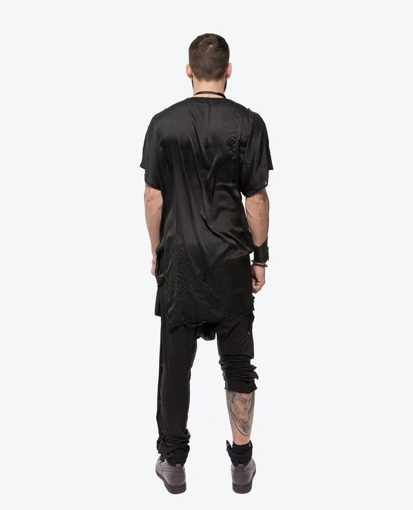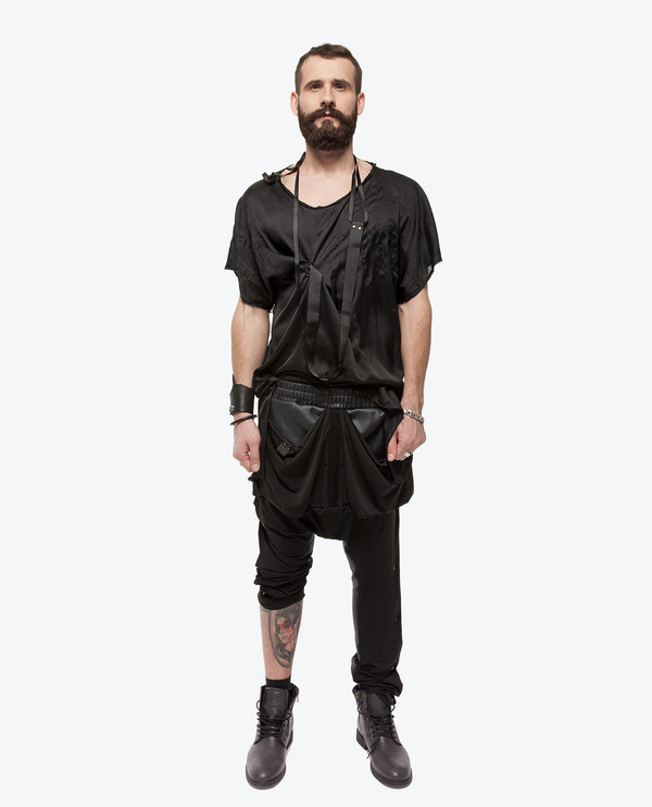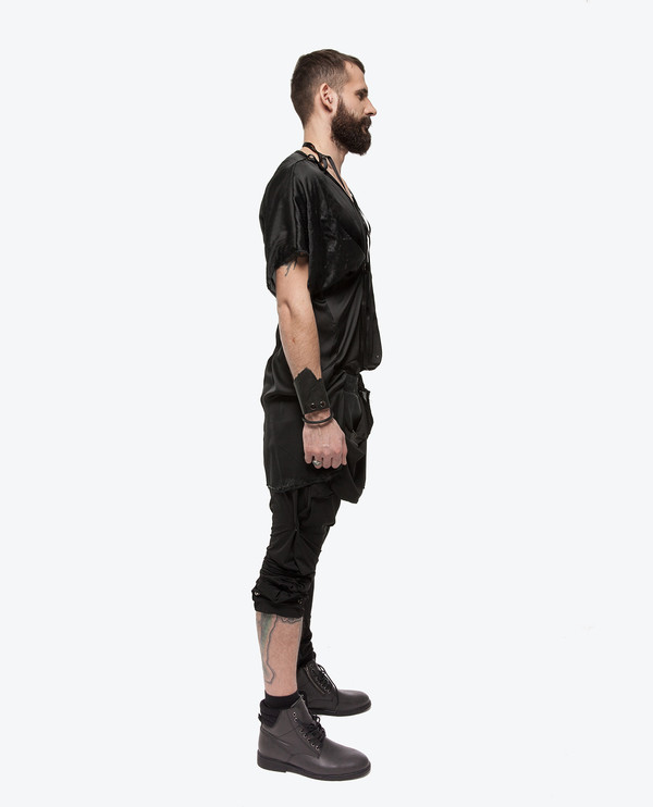 Удлиненная модель; множество вариантов застегивания строп; текстурирование ткани и обработка швов "гранж"