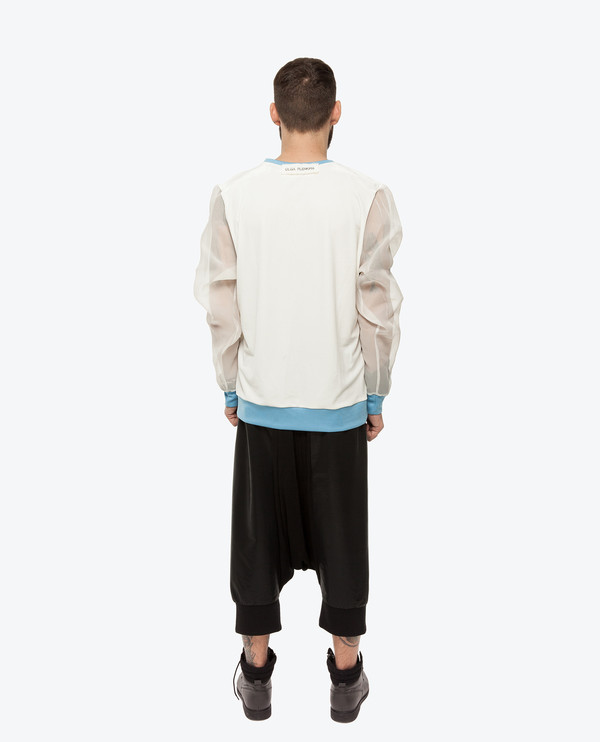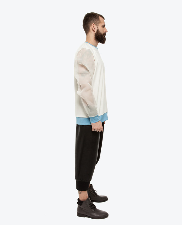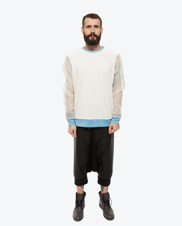 Яркая отделка горловины и рукавов; мягкий материал цвета облаков