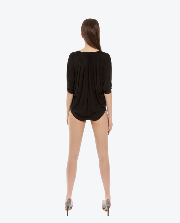 Комфортный мягкий трикотаж; сексуальный вырез спереди; рукава "летучая мышь"; множество вариантов сочетаний с другой одеждой