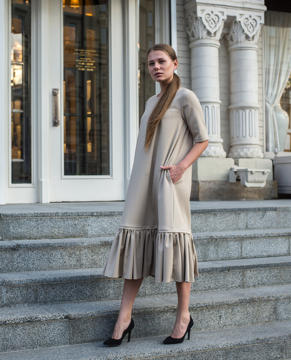 Платье "2 в 1" - юбка отстегивается. Есть боковые карманы.