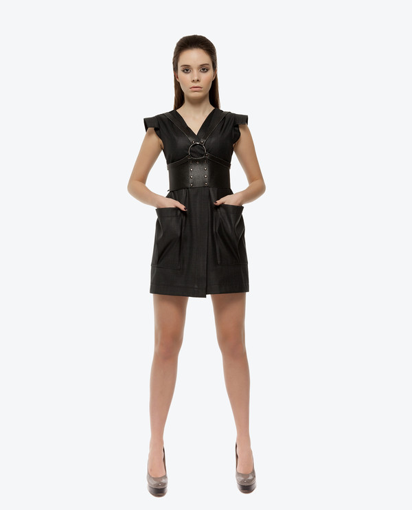 Платье-халат; рукава-"стойки"; объемные карманы спереди вместят весь мир; застегивается на кнопки;