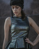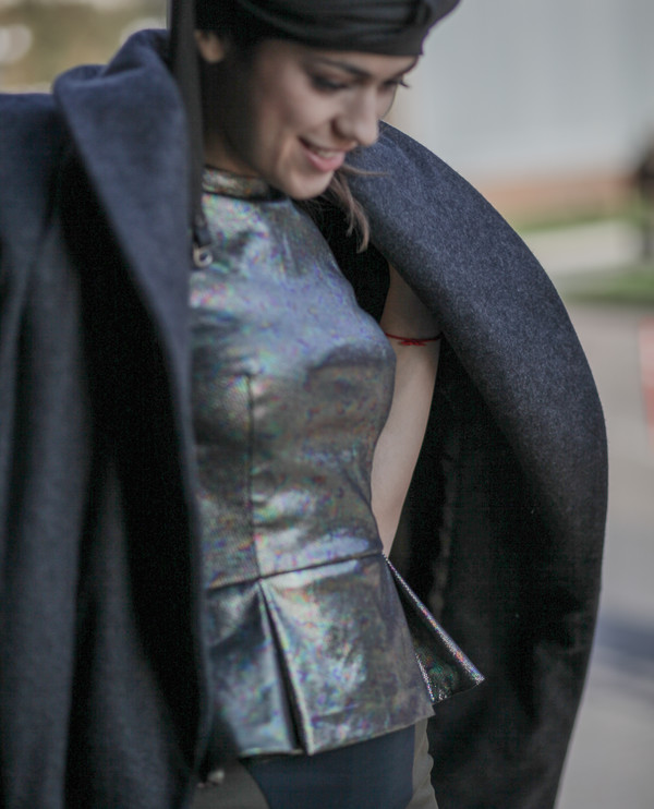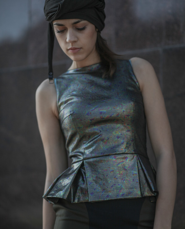 Кокетливая баска со складками, подчеркивающий талию крой.