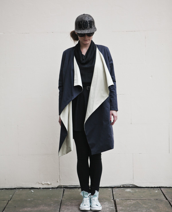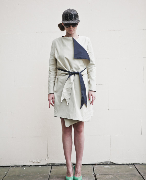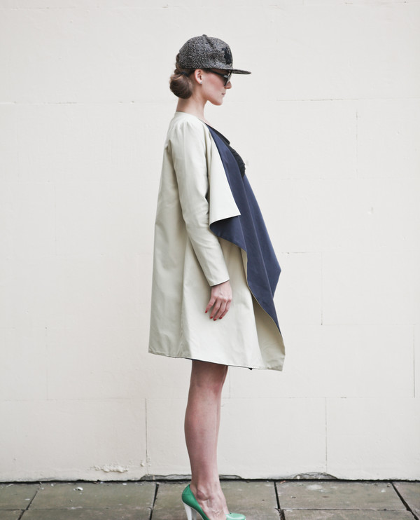 Двусторонний жакет с накладными карманами на темной стороне и проерезными карманами на светлой. Пояс в комплекте, он тоже двусторонний. Сочетается с платьями, юбками, джинсами.